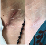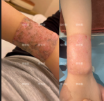 女子手腕洗纹身失败造成严重增生和色脱疤痕的修复